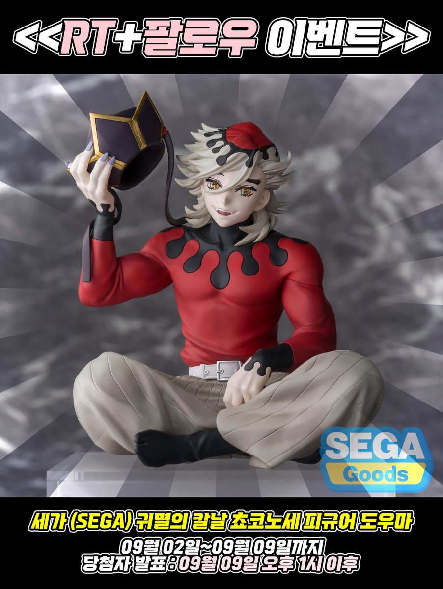 )를 팔로우+RT 해주시면 추첨을 통해 총 2명에게 「세가 (SEGA) 귀멸의 칼날 쵸코노세 피규어 도우마」를 드립니다!💖